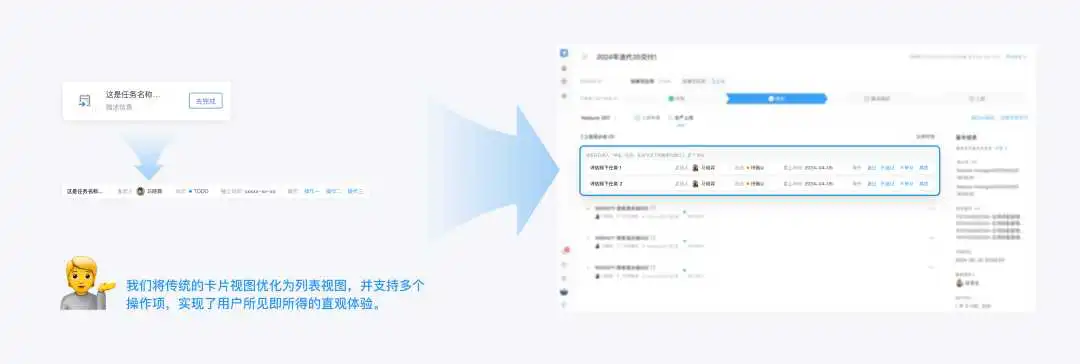 我们最初使用了数据可视化的看板来呈现各阶段下不同状态的概览信息,但这只解决了数据概览的问题,用户还是需要点击“详情”才能跳转至相应的页面。