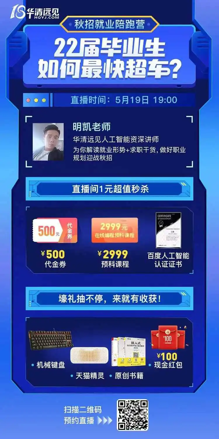 华清远见资深讲师明凯为大家准备了一场免费的公开课,为你解读就业形式。无论你是想谋求升职加薪,或是对这个行业感兴趣的应届生,都强烈推荐大家来听一听!一定可以帮到你!