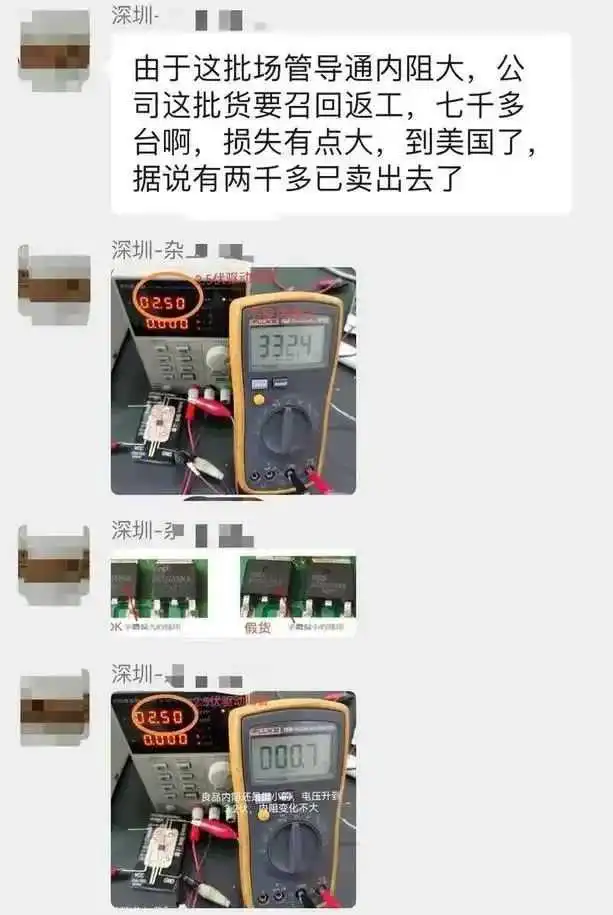 相较于其他元器件,MOS管更易造假。和常见芯片不同,通用的MOS,同一封装外观上看区别不大,但不同品牌的同一型号的MOS还是有差异的,同样规格型号的,有的标准测试环境DS内阻几百毫欧,有的几欧。