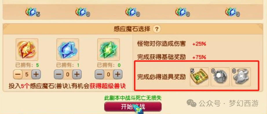 每投入1个“感应魔石”,副本的基础奖励(经验、金钱)提高15%