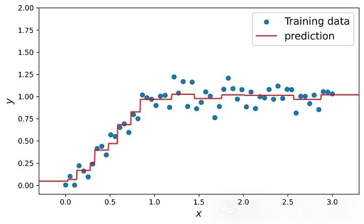 当然,如果数据点不在训练数据集中,我们不知道y的值。因此,在每一步中,我们训练一个弱模型来预测它。该模型采用特征x并预测残差