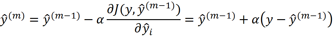 因此,这里每一步要更新的是模型预测。现在,如果我们将成本函数代入这个方程,我们得到: