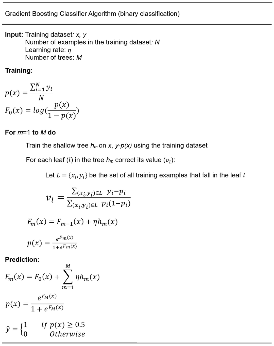 这与梯度提升回归器的方程完全相同。这个方程给出了特征 ( x ) 的预测赔率的对数,它也可以用于不在训练数据集中的未见特征 ( x )。目标为1的预测概率由以下公式给出: