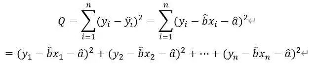对于假定的回归方程,如果直接用偏差进行评估,由于偏差有正有负,会相互抵消,所以不能反映采样点与回归方程的接近程度。因此采用n个样本点的平方和进行估计,