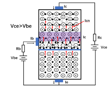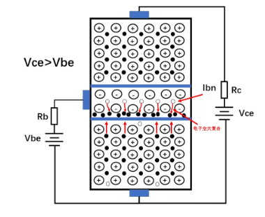 2)扩散基区的自由电子与空穴的复合运动系形成了基极电流Ib。