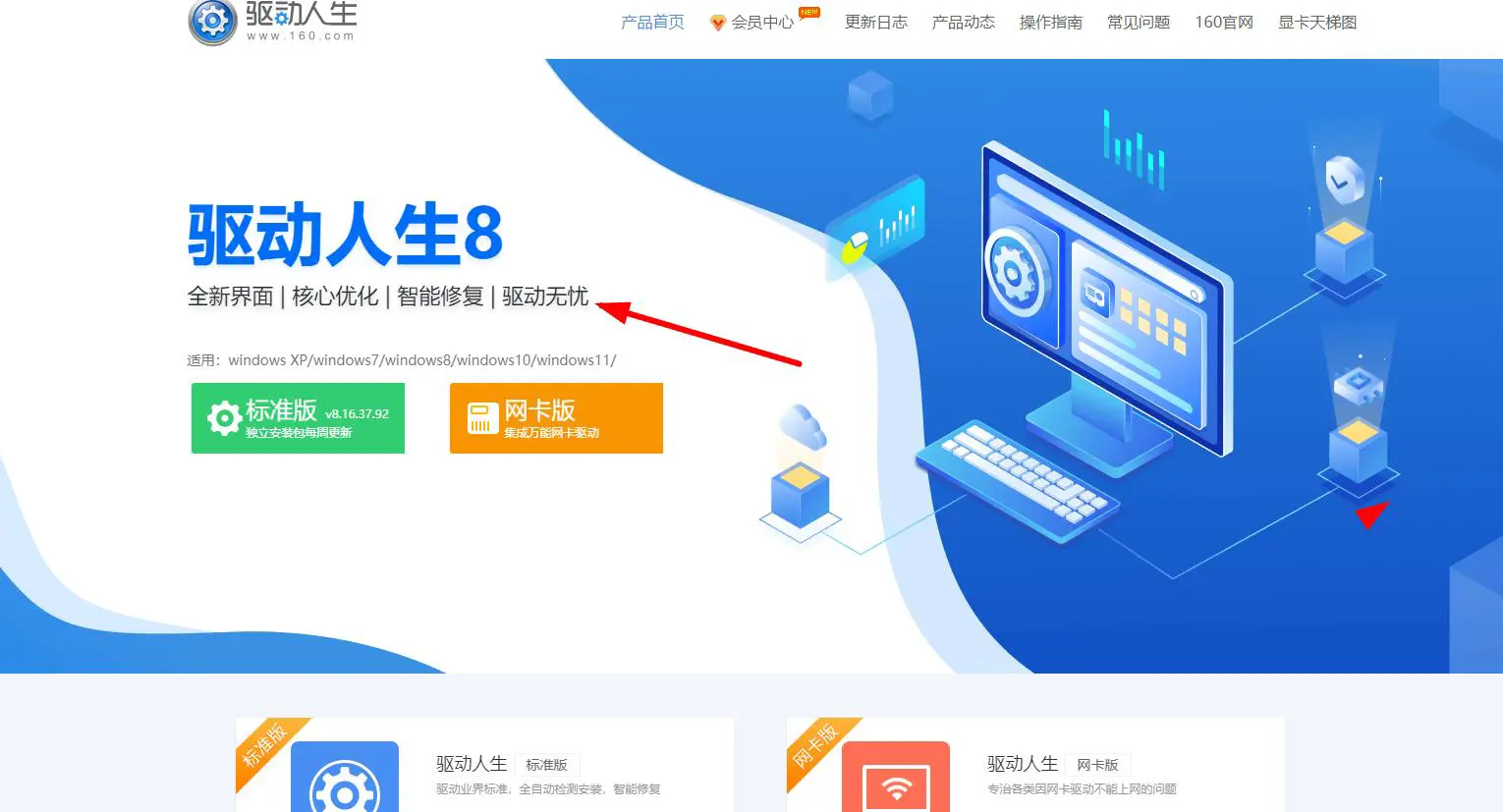 2、如果你不知道哪个版本的驱动能够兼容,建议使用驱动软件进行安装,它能自动识别适配的驱动版本。