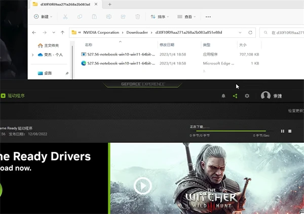 3、用户在NVIDIA程序中下载最新版本,可以发现乱码文件夹中出现了安装包但是又消失了,然后就提示下载安装失败。