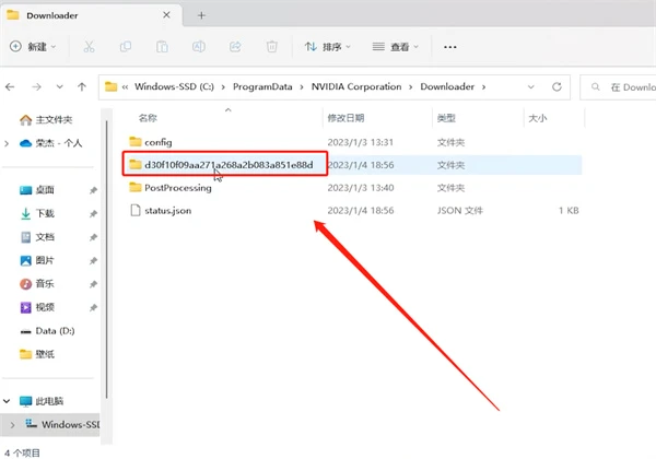 2、或者在C:ProgramDataNVIDIACorporationDownloader文件夹中找到乱码文件夹打开。
