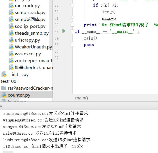 而本次流量分分析用到的关键思路只是用正则匹配邮箱,然后做一次统计而已,比较简单,下面追加关键代码。