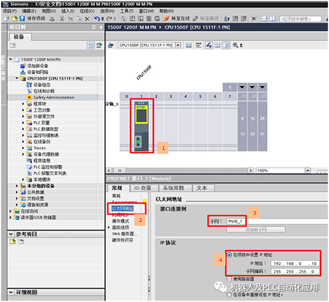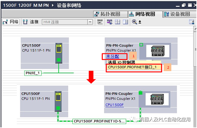 在本例程中,将CPU1511F-1PN作为一个PROFINET 控制器,CPU1215FC作为另一个PROFINET 控制器,通过PN/PN Coupler实现两个CPU的安全相关的通信。