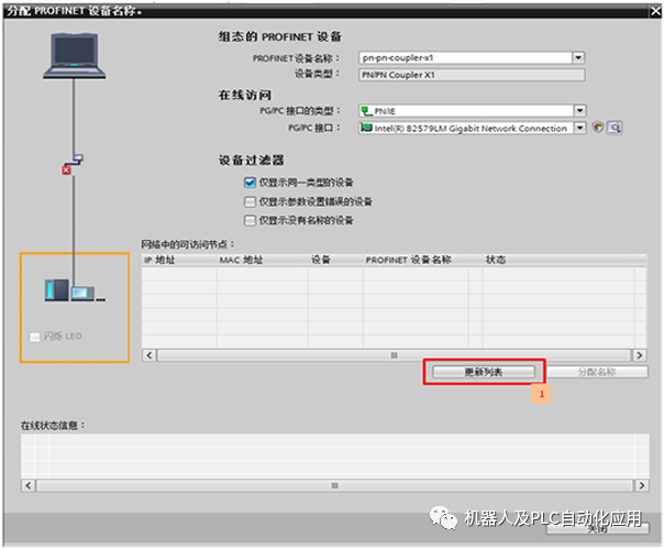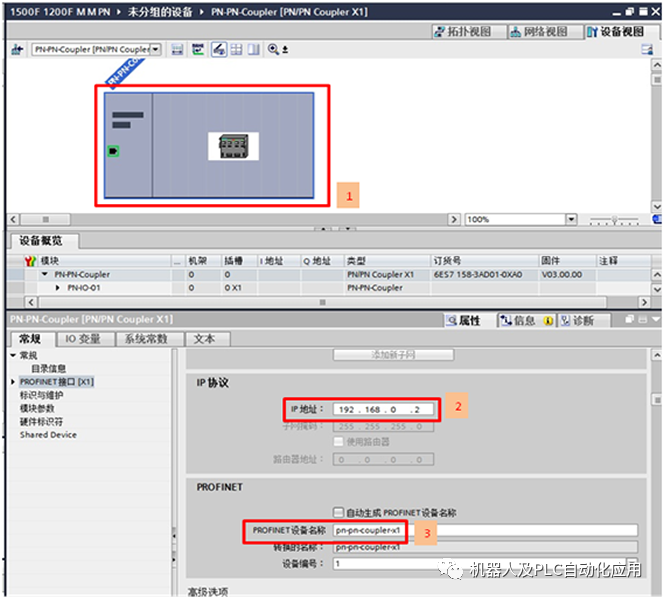 - 将PN/PN Coupler X1分配给IO控制器,并进入设备试图分配参数,如图2-5,2-6。
