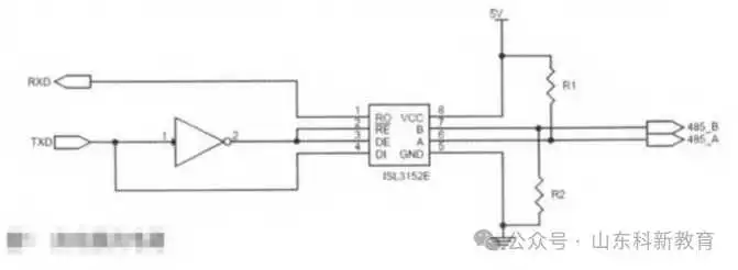 在空闲状态下,串口的发送信号TXD为高电平,经过反相器后输出低电平,使485芯片处于接收状态,而RS485总线由于上下拉电阻的作用处于A高B低的状态。当发送数据时,TXD信号线上的低电平比特位控制485芯片进入发送状态,将该比特发送出去。而高电平比特位则使485芯片处于接收状态,由于RS485总线上下拉电阻把总线置于A高B低的状态,即表示发送了高电平。