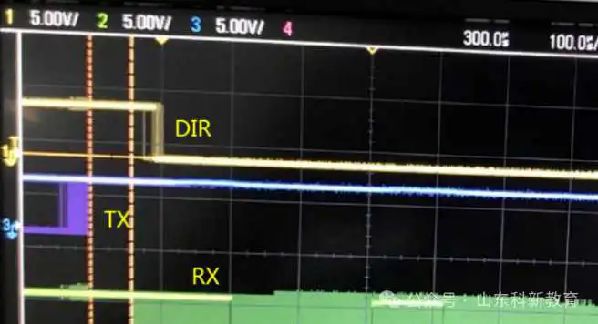 例如下图1、图2中,CPU端的TX信号发送完毕后约100uS后方向引脚 拉低,切换到接收状态,但是在TX信号发送完毕后60uS从机就回复了的RX信号,由于此时还是处于RS485芯片还是处于发送状态,此时的接收数据将会被忽略,在系统层面就是体现为数据接收丢包。