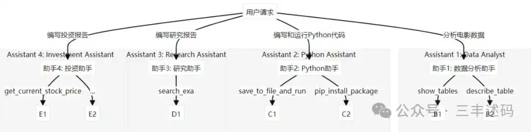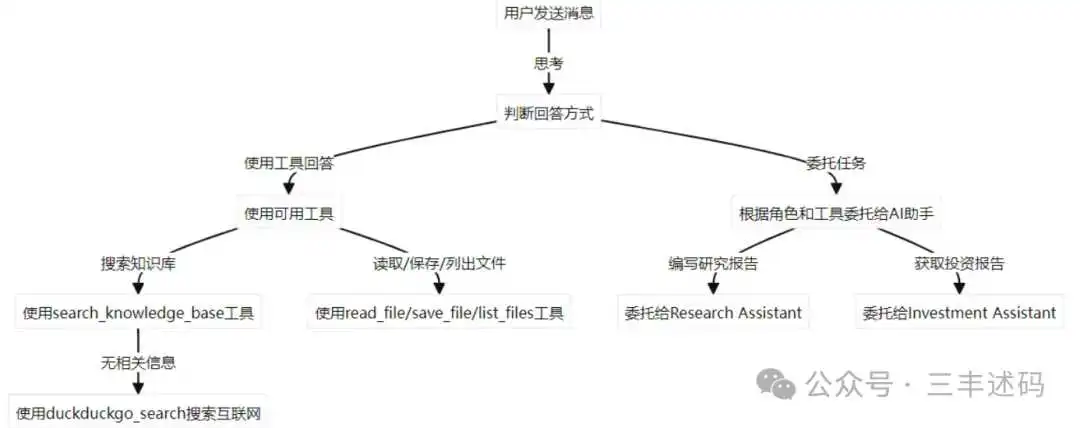 - 对于一些类别的任务,可以委托给特定的助手,比如研究报告、投资助手等