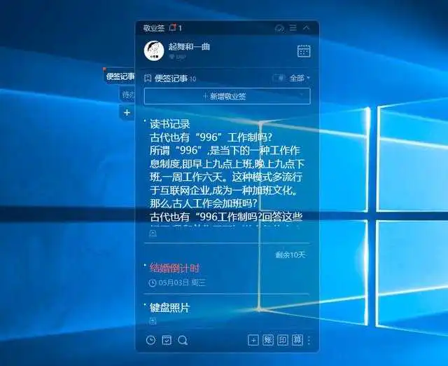一般大多数上班族使用的办公设备都是Windows电脑,那么有什么Windows电脑上好用的记笔记软件推荐吗?答案当然是有的,敬业签这款电脑记笔记软件不仅支持一直悬挂在电脑桌面端显示,而且支持用户随时添加多种格式的内容来做笔记。