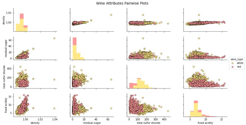 colors = [ 'red' if wt == 'red' else 'yellow' for wt in list(wines[ 'wine_type'])]