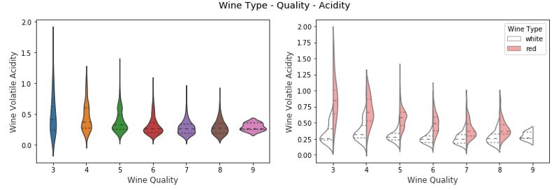 f.suptitle( 'Wine Type - Quality - Acidity', fontsize= 14)