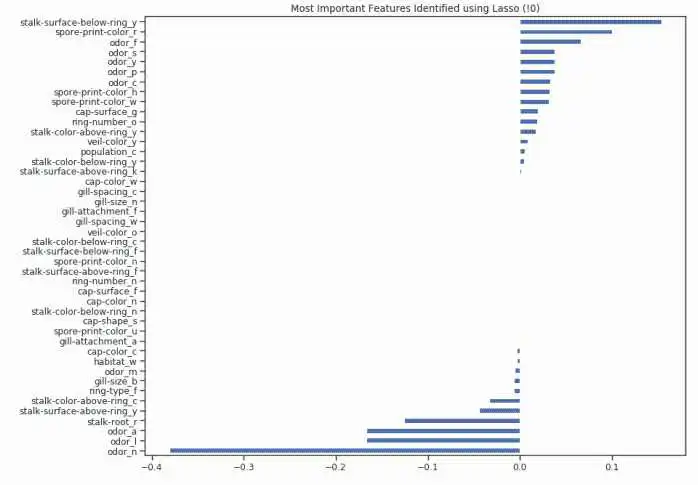 plt.title("Most Important Features Identified using Lasso (!0)")