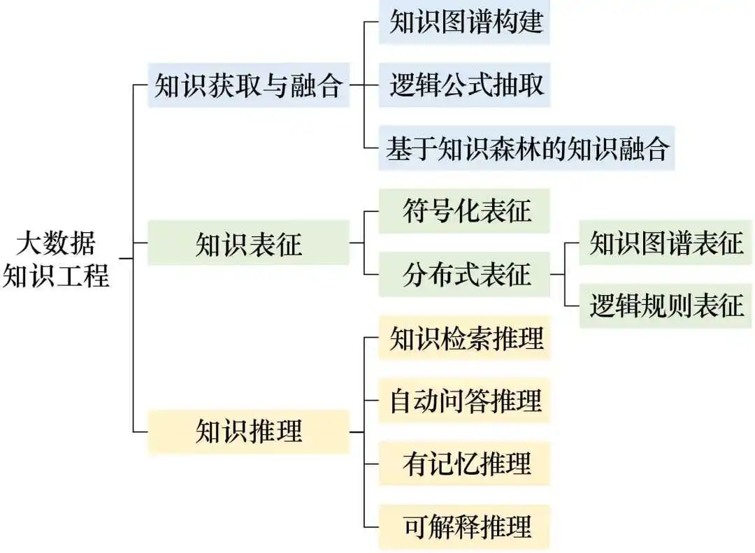 大数据知识工程可以从多源大数据中挖掘碎片知识,融合成人类可理解、机器可表征与可推理的知识库 / 知识图谱,可显著缓解上述技术的局限性,为求解实际工程问题提供支撑。与传统知识工程不同,大数据知识工程的知识获取过程以机器为主、人工为辅,有效地缓解了传统知识中“知识获取”的瓶颈问题;同时,大数据知识工程生成的符号化知识有助于弥补现有深度学习的局限性,两者融合有望实现“符号+神经”的推理方式,可以同时应对实际工程问题中普遍存在的直觉系统(System 1)与逻辑分析系统(System 2)的推理任务。