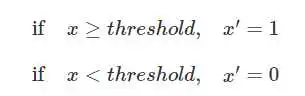 特征二元化的过程是将数值型数据转换为布尔型属性。设定一个阈值,大于阈值的赋值为1,小于等于阈值的赋值为0,公式表达如下: