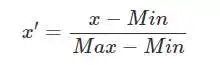 区间缩放法的思路有多种,常见的一种为利用两个最值min、max进行缩放,公式为: