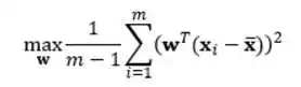 设n维向量w为目标子空间的一个坐标轴方向(称为映射向量),最大化数据映射后的方差,有: