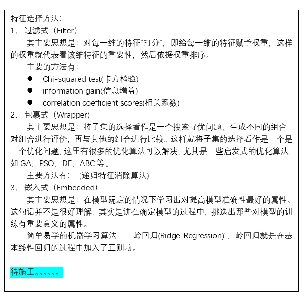 有些特征和我们的模型不相关、有些特征是关联的,只需要保留一个就可以了。所以,我们要对这些特征进行选择处理。