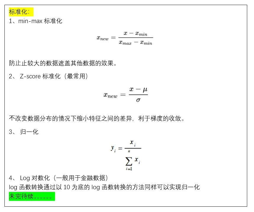 把未结构化的数据结构化、缺失值处理、对数据标准化。其中标准化包括z-socre标准化,min-max标准化,还有L1和L2正则化。