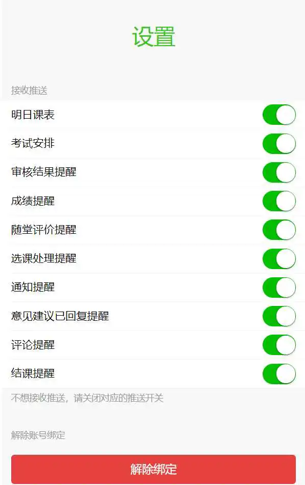 十四、“设置”包含南医大教学推送接收的相关设置: