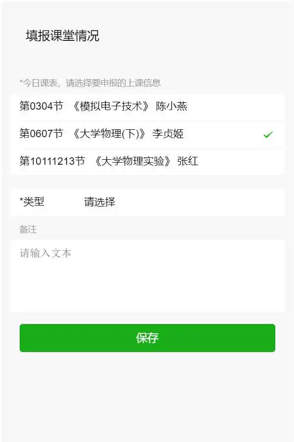 十三、“课堂速报”,点击绿色加号,同学们可对当天课堂情况进行申报评价: