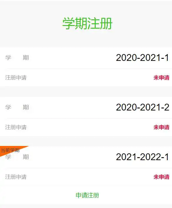 十二、“学期注册”负责每学期报道学籍的注册,同学们无需自己申请注册,否则需要联系辅导员统一操作解决。