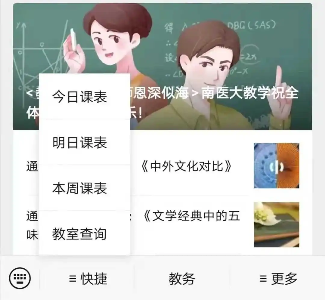 在日常生活中,大家会频繁运用的是“我的课表”“全校课表”“教室查询”等功能,小吐司们可以自行反复回看与之相关的介绍噢!
