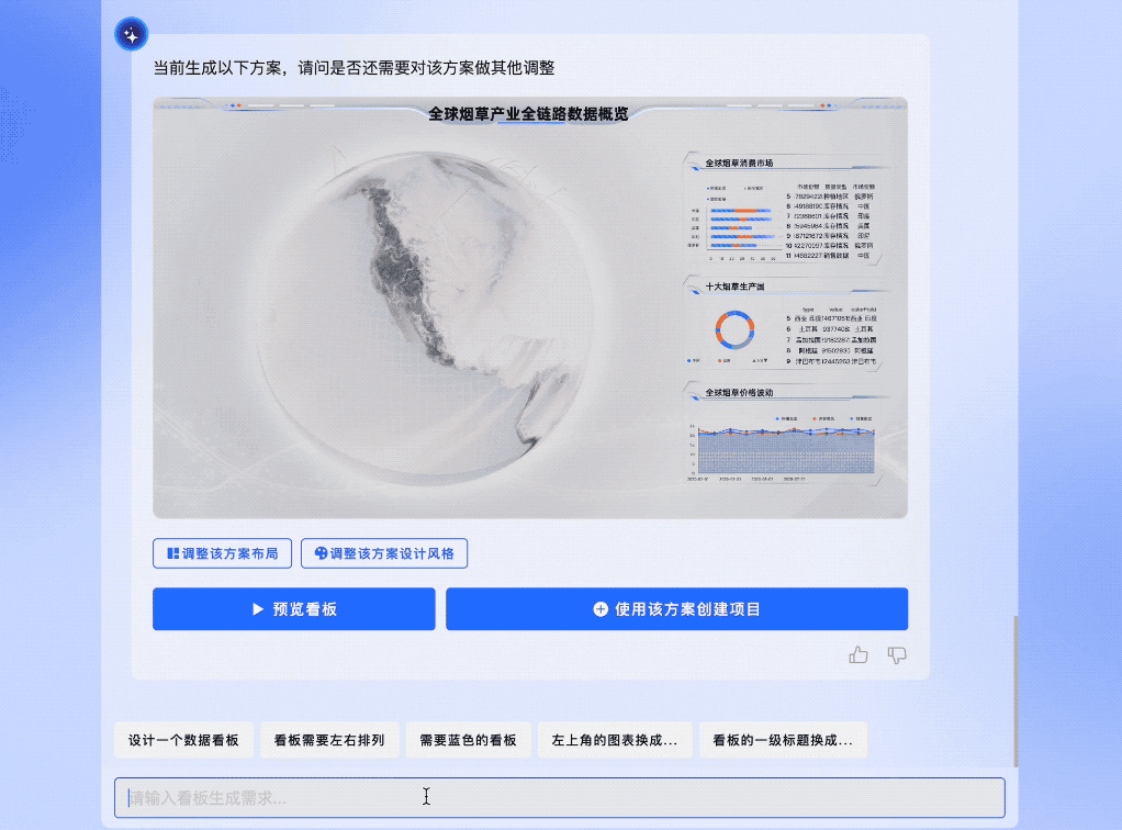 DataV将大模型与数据可视化技术结合,通过自然语言交互,帮助用户将业务需求一键生成数据可视化应用,让用户能便捷高效地处理数据、开发和部署可视化应用,提升企业数字化建设效率。