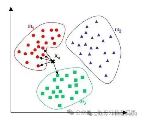 模型原理:K近邻算法是一种基于实例的学习方法。当面临新的样本时,该算法通过比对新样本与已知样本,找出与新样本最为接近的K个样本。随后,根据这K个邻近样本的类别,通过投票机制来预测新样本的所属类别。