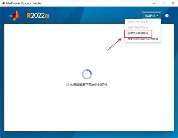 3、点击右上角高级选项,选择“我有文件安装密钥”;