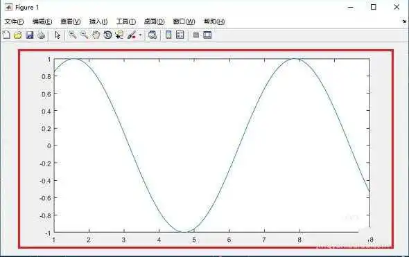 4、第四步运行m文件,可以看到画出正弦函数图像,如下图所示: