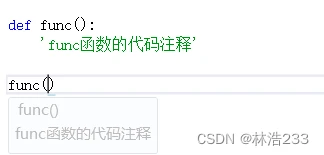 定义函数的时候可以进行代码注释,当编写调用函数的代码时,解释器会有相应的提示消息出现