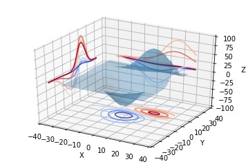 二维的等高线,同样可以配合三维表面图一起绘制: