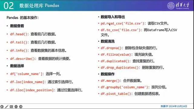 本次分享会是由五道口金融学院和大数据协会联合举办的系列讲座,以初级python入门为主,是为非计算机非数据科学专业,但有助于学习编程的同学量身定制的精品讲座。目标是为未来数据分析人才配备先进的编程理念和操作技巧,强化学科研究能力,促进跨学科交流与合作。活动分为三期,第二期由自动化系优秀博士生陈鹏宇主讲,主要学习Python数据分析的核心库Pandas的使用,包括数据处理、语音可视化等。Pandas是Python数据分析中最核心的库,可以用于读取Excel文件和数据库,进行各种数据分析。此外,还介绍了其他常用的Python第三方库,如NumPy、Micro Library和CBC Bone,它们分别提供数值计算、可视化、统计机器学习算法等功能。
