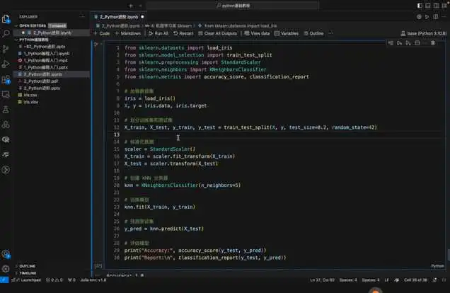 主要介绍了机器学习库SIQ learn(SK learn)及其在数据分析中的应用。SIQ learn是一个开源的机器学习库,提供了丰富的函数,如数据降维、分类、回归聚类等。通过示例脚本,展示了如何对鸢尾花数据进行分类,并取得了很好的效果。同时,分享者还推荐了Numpy教程和文档作为学习资源,强调阅读官方文档的重要性。
