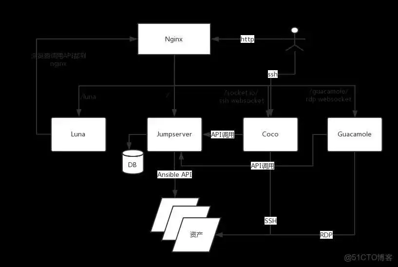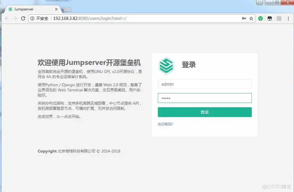 Jumpserver 是全球首款完全开源的堡垒机,使用 GNU GPL v2.0 开源协议,是符合 4A 的专业运维审计系统。Jumpserver 使用 Python / Django 进行开发,遵循 Web 2.0 规范,配备了业界领先的 Web Terminal 解决方案,交互界面美观、用户体验好。 Jumpserver 采纳分布式架构,支持多机房跨区域部署,中心节点提供 API,各机房部署登录节点,可横向扩展、无并发访问限制。