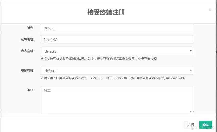 registry.jumpserver.org/public/guacamole:1.0.0 Unable to find image 'registry.jumpserver.org/public/guacamole:1.0.0' locally Trying to pull repository registry.jumpserver.org/public/guacamole ... 1.0.0: Pulling from registry.jumpserver.org/public/guacamole a2c089: Pull complete abe15a44e12f: Pull complete 409a28e3cc3d: Pull complete a9511c68044a: Pull complete 9d1b16e30bc8: Pull complete 0fc5a09c9242: Pull complete d: Pull complete 3b70003f0c10: Pull complete bce2e: Pull complete d2ab4f: Pull complete 3882b23577d6: Pull complete 9f8b758ebfa6: Pull complete ef5d2d: Pull complete 310fa32446d6: Pull complete a23204f32cd2: Pull complete f3cba08c8ef8: Pull complete f2e3: Pull complete 86d50039bf5c: Pull complete 7041bb4312f0: Pull complete ca5cc9: Pull complete cef49dddf00f: Pull complete 3535ea: Pull complete 2dd70d9a46ce: Pull complete Digest: sha256:ea862bb2e83bc27900bca14b0ab7ab9d4572e716c25a816dc55307b Status: Downloaded newer image for registry.jumpserver.org/public/guacamole:1.0.0 38910abc050cea50fa03acc913e4916fde9d6a1274f6e37a9131ba31 #然后去后台接受注册信息