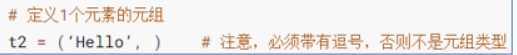 注意: 元组只有一个数据,这个数据后面要添加逗号