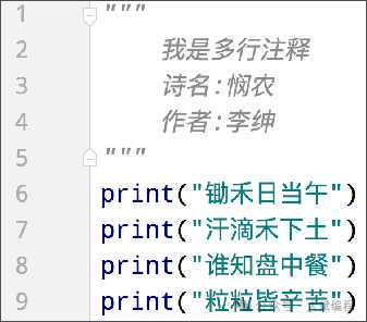 多行注释:一对三个双引号 引起来