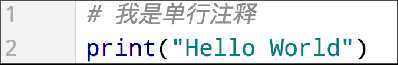 单行注释:以 #开头,#右边 的所有文字当作说明,而不是真正要执行的程序,起辅助说明作用