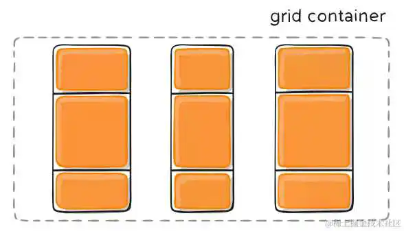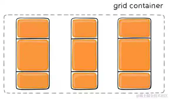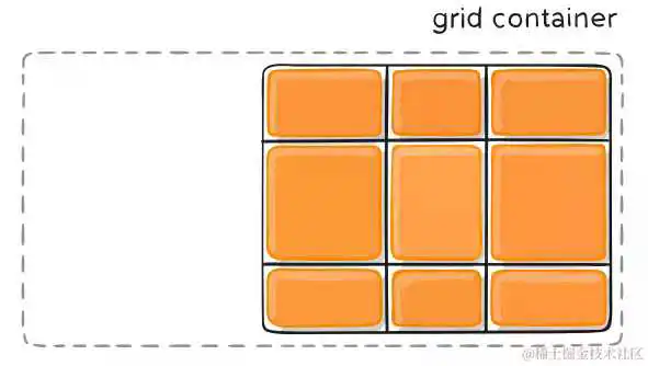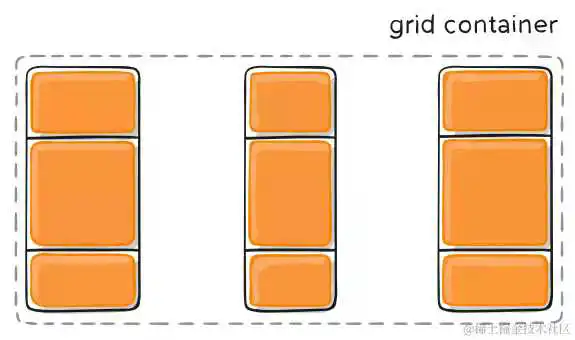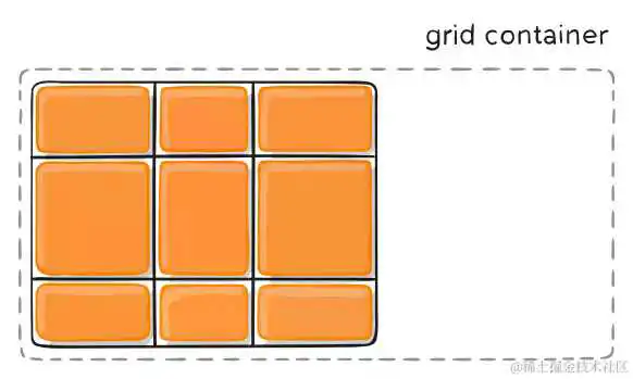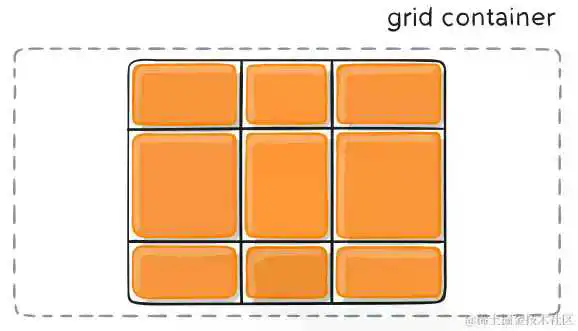 采用网格布局的区域,称为"容器"(container)。容器内部采用网格定位的子元素,称为"项目"(item)。