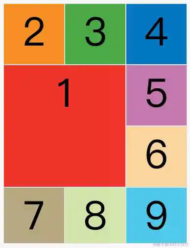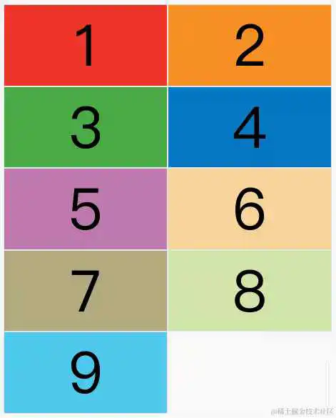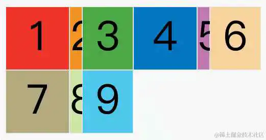 上图会先填满第一行,再填满第二行,所以3号项目就会紧跟在1号项目的后面。8号项目和9号项目就会排到第四行。
