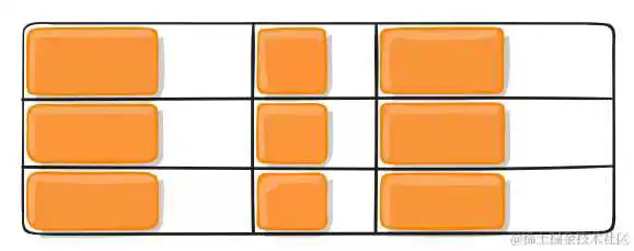 上面代码指定了一个三行三列的网格,列宽和行高都是。