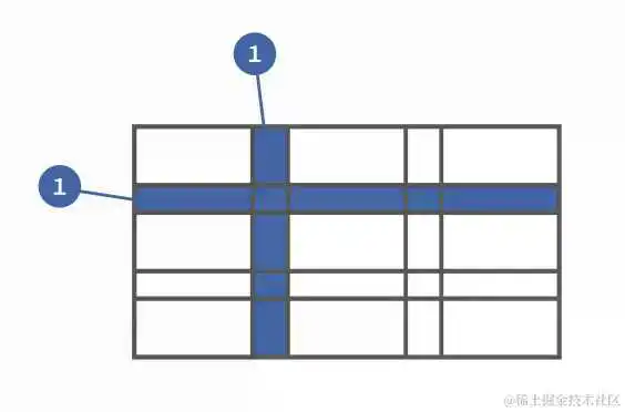 上图中,水平的深色区域就是"行",垂直的深色区域就是"列"。