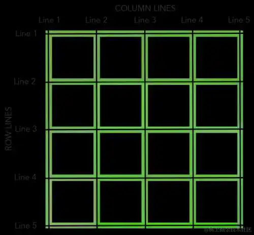 划分网格的线,称为"网格线"(grid line)。水平网格线划分出行,垂直网格线划分出列。